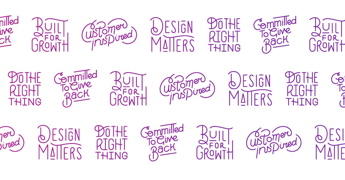 All of our new Core Values were purposely imbued with language that deeply reflects our commitment to diversity and inclusion, as well as our mission to inspire both organizational and personal growth. Our Core Values Design team also helped infuse them with creativity in order to create intentional, beautiful typography for each one.
